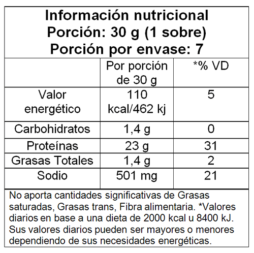 Contenido Neto: 210 g (7 sobres de 30 g cada uno)