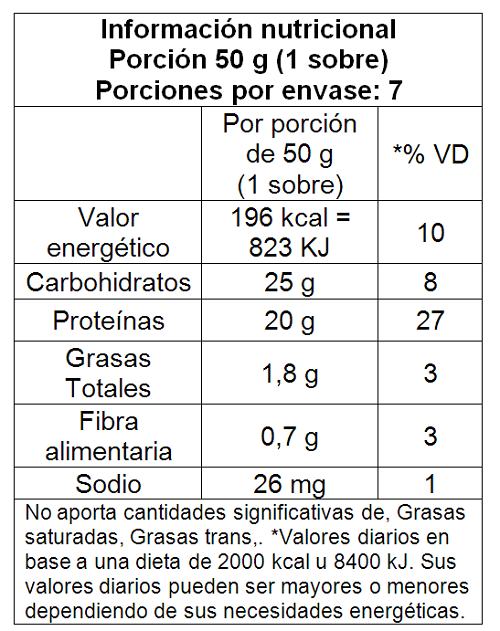 Contenido Neto: 350 g (7 sobres de 50 g cada uno)